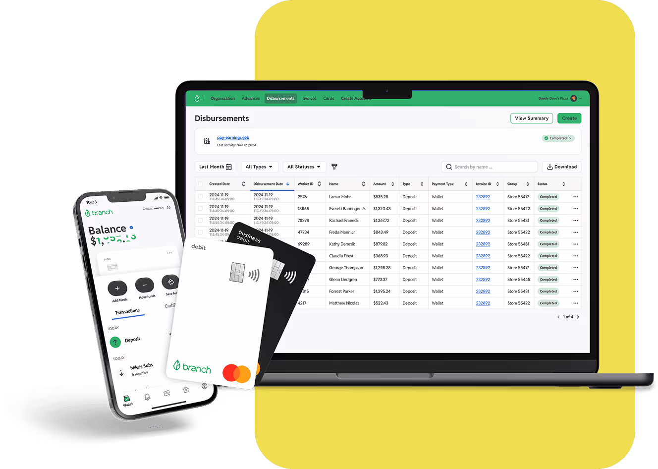 With Branch, workers receive a comprehensive digital banking solution including: