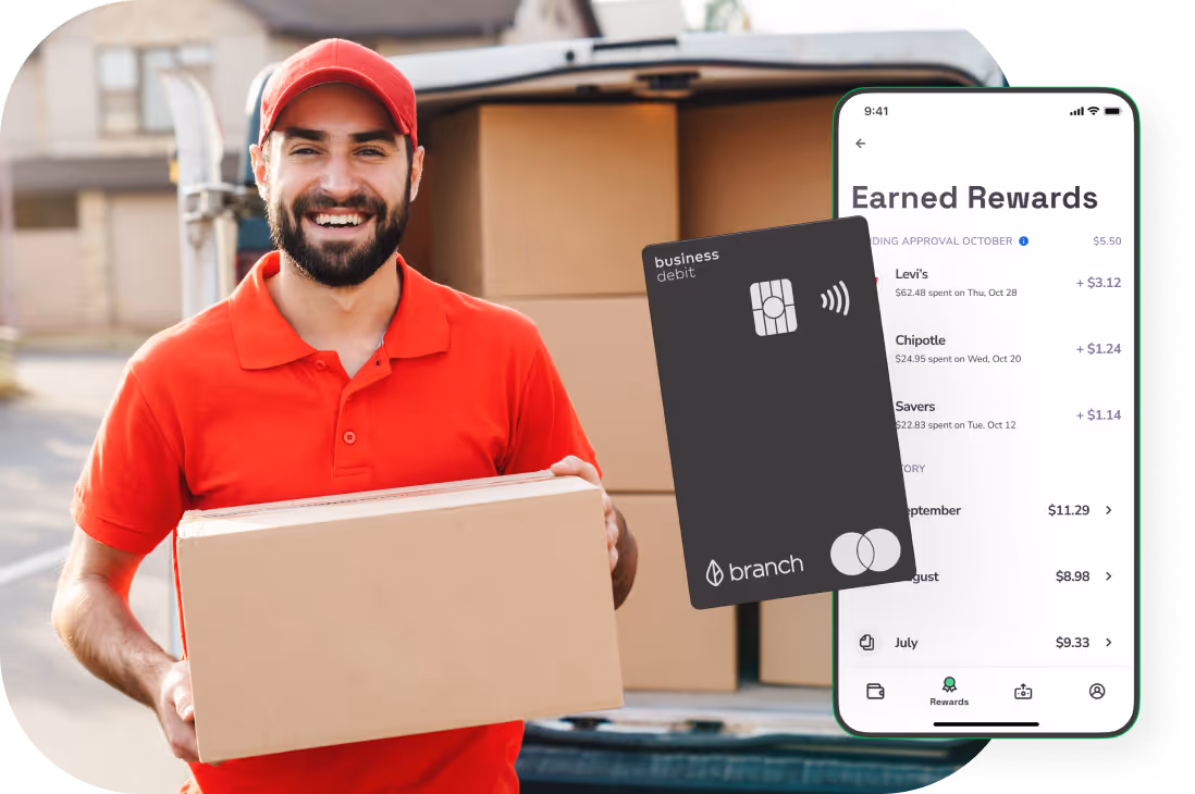 Branch up levels worker payments with a digital banking experience and debit card your workers can take with them for life. Contractors can use their business account and debit card to pay bills, buy gas, shop online, or make other purchases—and even earn cashback rewards while they shop.