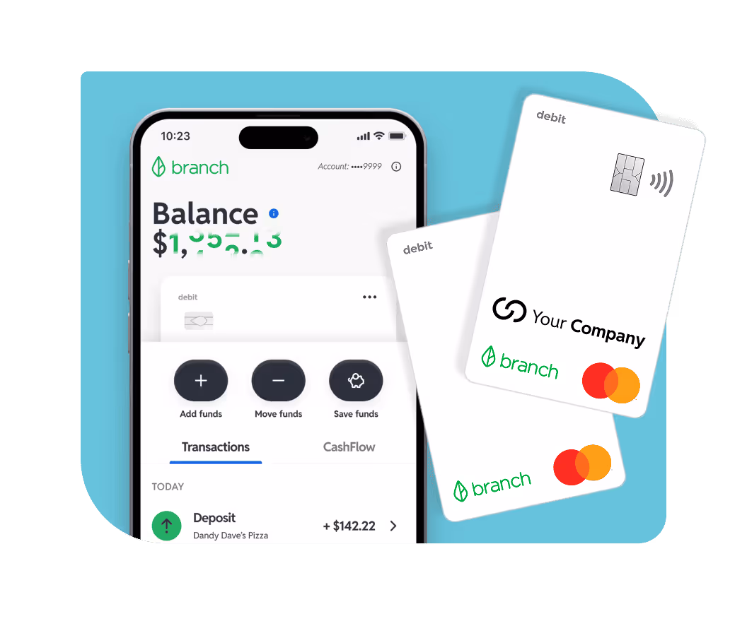 Each Branch debit card is paired with a bank account with fee-free options and a versatile digital wallet. Your earners can use it to effortlessly bill pay, shop online, and make any purchase they would with a traditional debit card.